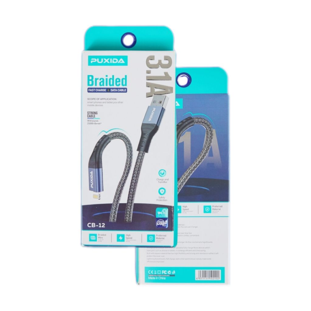 El Cable Puxida está diseñado para quienes buscan resistencia, velocidad y seguridad en un solo producto. Gracias a su construcción reforzada con malla trenzada, soporta más de 25.000 dobleces, garantizando una larga vida útil frente al uso diario. Con 3.1A de potencia, permite una carga rápida y eficiente de tus dispositivos Apple con entrada Lightning, reduciendo tiempos de espera y optimizando el rendimiento. Además, su capacidad de transferencia de datos de alta velocidad asegura una sincronización estable y confiable. Un cable premium que combina durabilidad, diseño moderno y un rendimiento de carga superior, ideal para el día a día.