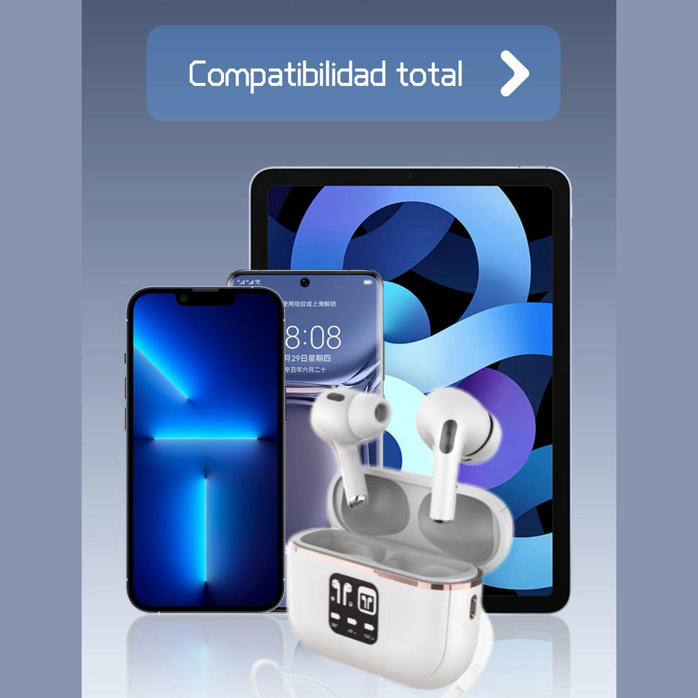 El estuche de carga con pantalla digital no solo protege tus auriculares, sino que actúa como una power bank portátil, ampliando la autonomía a más de 6 horas de uso continuo. Llévalos contigo a todas partes y recárgalos fácilmente con el cable incluido.