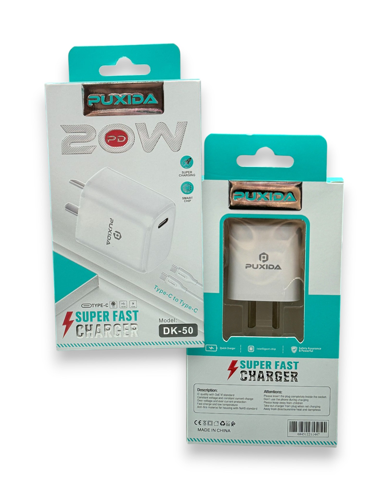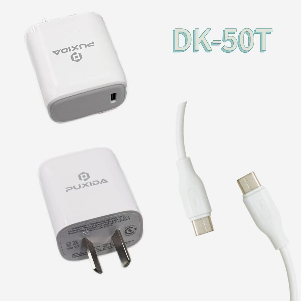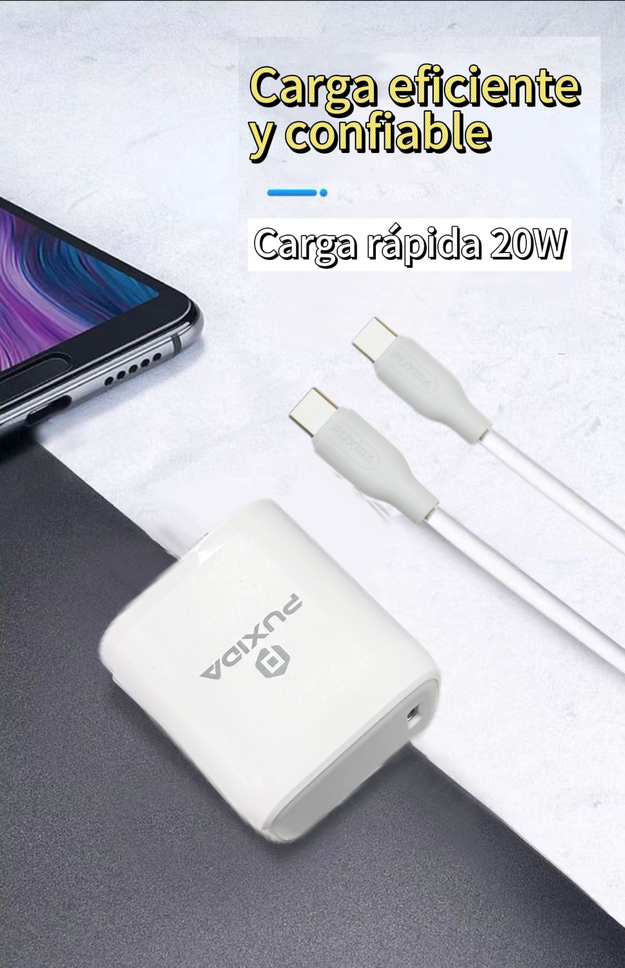 Diseñado para la vida moderna, el Cargador Puxida ofrece la combinación perfecta de velocidad, seguridad y durabilidad. Con su salida USB-C de 20W y un cable reforzado incluido, es el kit definitivo para proteger tu inversión y mantener tus dispositivos siempre listos.