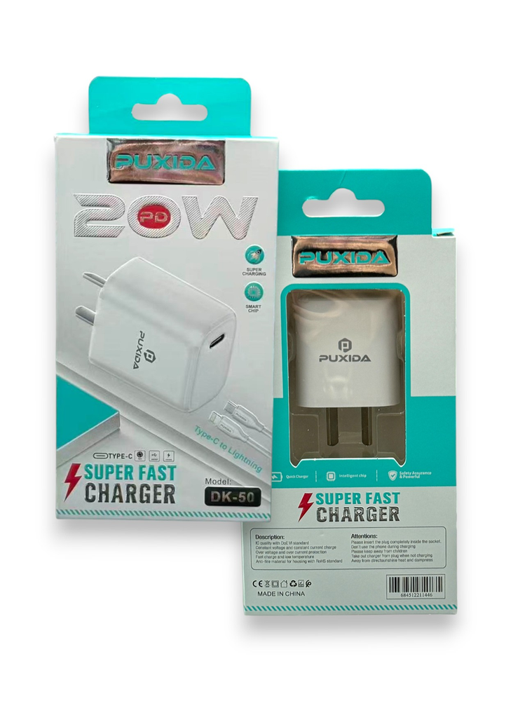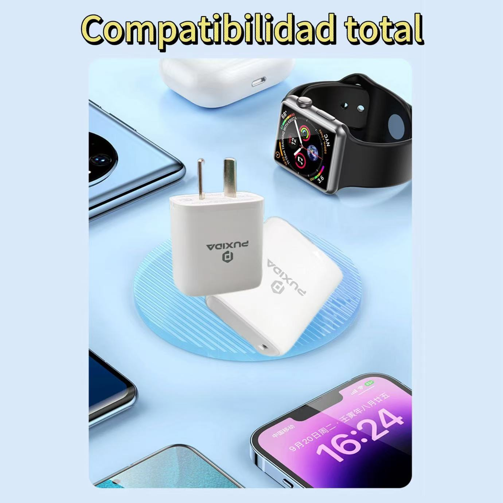 Diseñado para la vida moderna, el Cargador Puxida ofrece la combinación perfecta de velocidad, seguridad y durabilidad. Con su salida USB-C de 20W y un cable reforzado incluido, es el kit definitivo para proteger tu inversión y mantener tus dispositivos siempre listos.