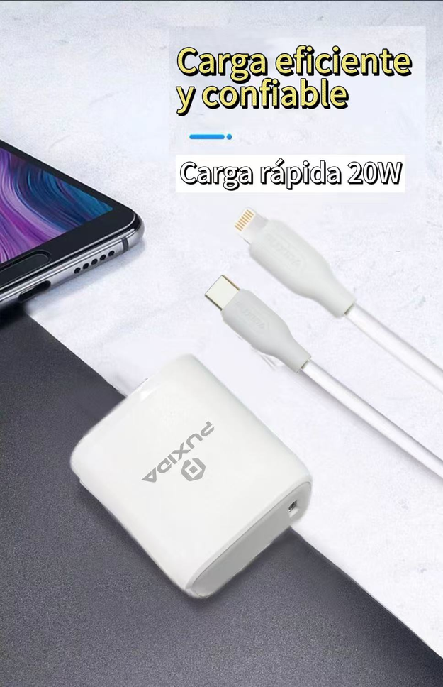 ⚡ Cargador Puxida 20W: Carga Rápida y Segura con Cable Reforzado Incluido