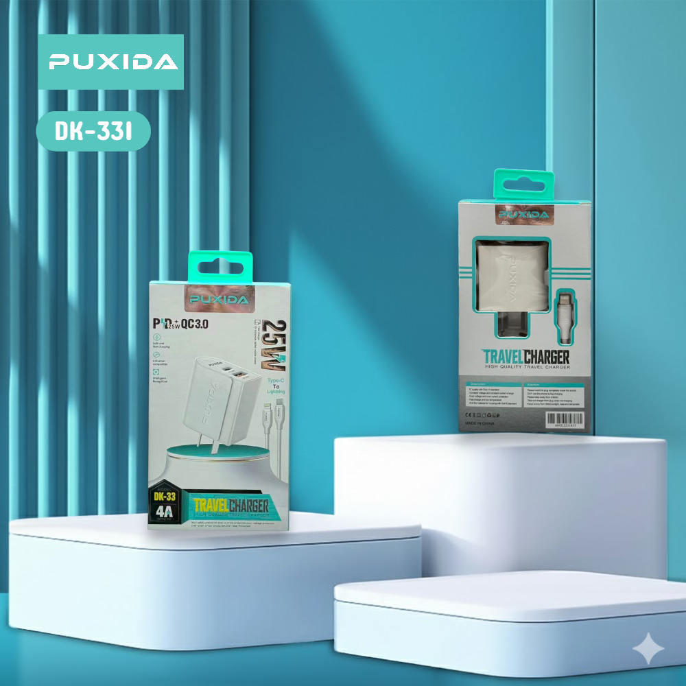 Lleva tu experiencia de carga al siguiente nivel. El cargador PUXIDA combina 25W de potencia inteligente con dos puertos de salida (USB-A y USB-C), ofreciendo la versatilidad y velocidad necesarias para un estilo de vida conectado.