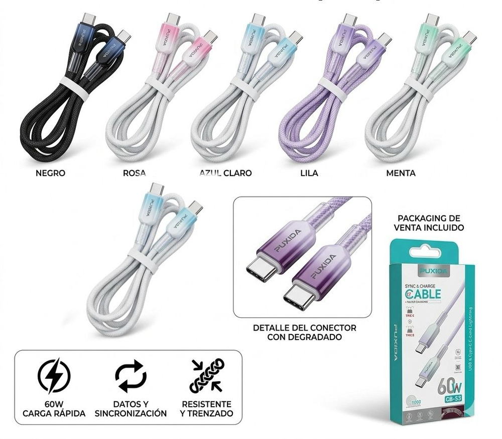 El Cable Puxida está diseñado para quienes buscan resistencia, velocidad y seguridad en un solo producto. Gracias a su construcción reforzada con malla trenzada, soporta más de 25.000 dobleces, garantizando una larga vida útil frente al uso diario.