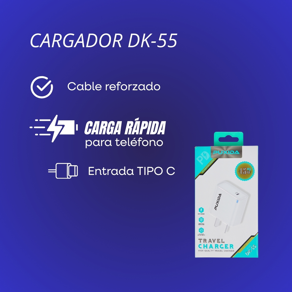 Cargador de alto rendimiento diseñado especialmente para quienes necesitan potencia y seguridad en cualquier lugar. Con una capacidad de 45W y tecnología Power Delivery (PD), este adaptador permite recargar teléfonos, tablets e incluso notebooks compatibles con gran rapidez y eficiencia. Su entrada Tipo-C garantiza máxima compatibilidad con dispositivos modernos y su chip inteligente de protección cuida la batería contra sobrecargas, sobrecalentamientos y picos de tensión. El diseño compacto y ligero lo convierte en el aliado perfecto para llevar en viajes o uso diario, asegurando energía extra en todo momento.