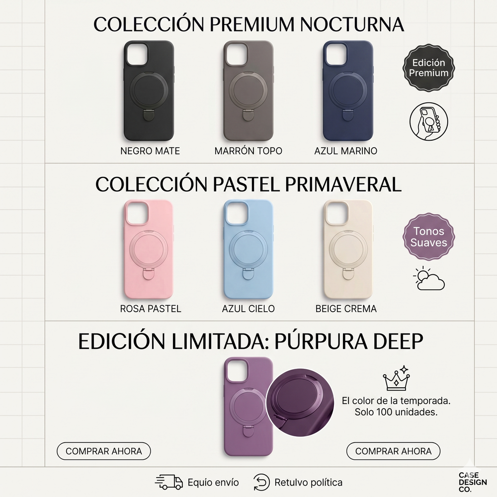 Versatilidad total: sostén tu teléfono de forma segura o colócalo en modo horizontal o vertical para manos libres. Se pliega de forma plana.