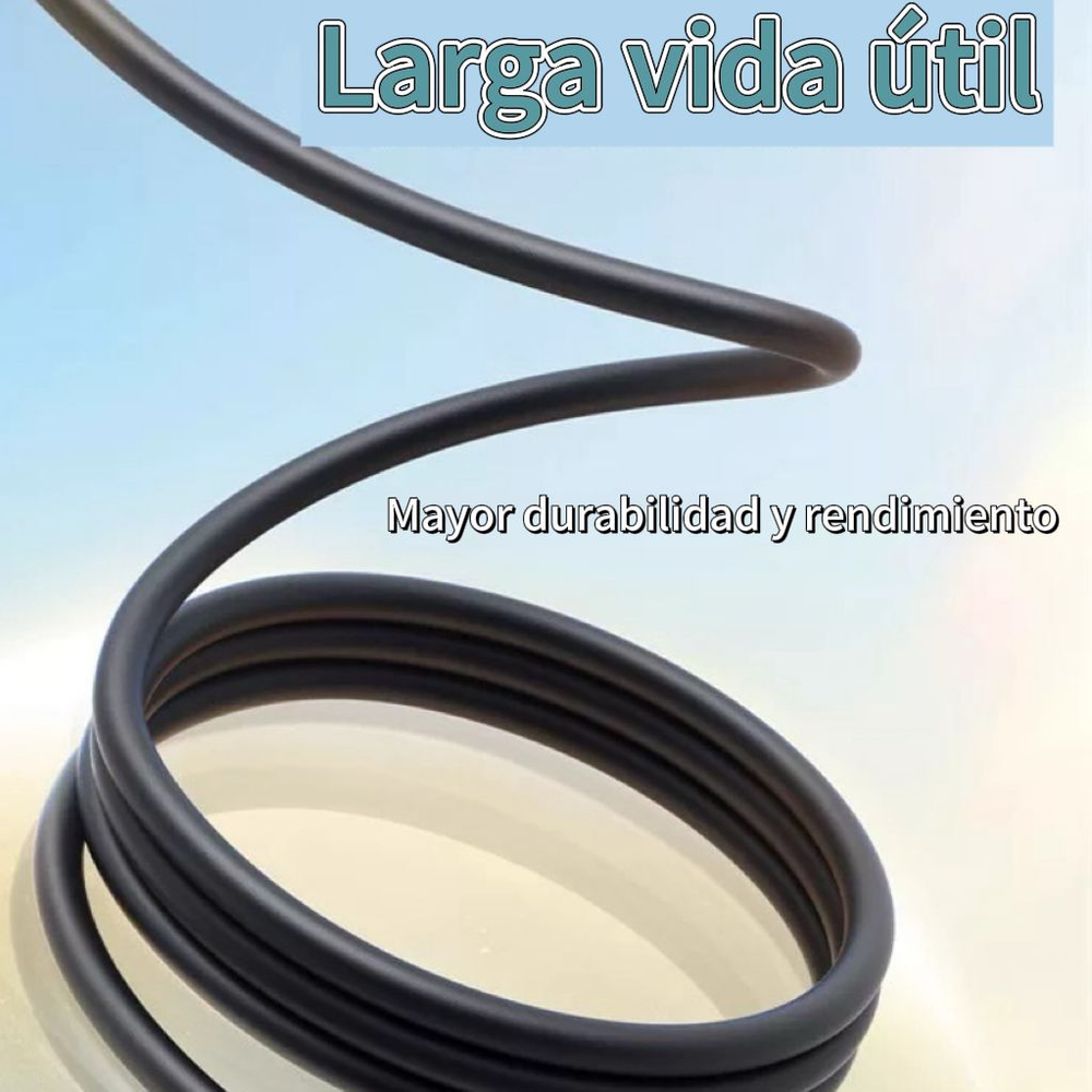 Construcción antidesgaste. La cubierta de PVC reforzado protege contra tirones accidentales y dobleces repetitivos, multiplicando su vida útil frente a los cables convencionales.
