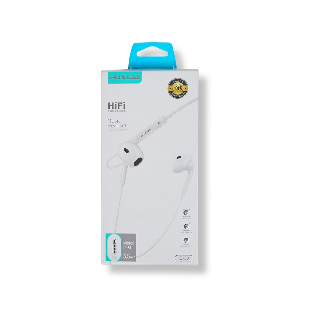 Los auriculares PUXIDA CON CABLE están diseñados para quienes buscan comodidad y calidad de sonido en todo momento. Gracias a su diseño ergonómico, se adaptan perfectamente al oído para un uso prolongado sin molestias. Incorporan tecnología HiFi que ofrece un sonido estéreo nítido y equilibrado, ideal para disfrutar música, podcasts o llamadas con máxima claridad. Su cable ligero y resistente garantiza durabilidad y practicidad en el día a día, mientras que el conector metálico de 3.5 mm asegura una conexión estable y compatible con la mayoría de los dispositivos. Una opción práctica y confiable para acompañarte en tu rutina con la mejor calidad de audio.
