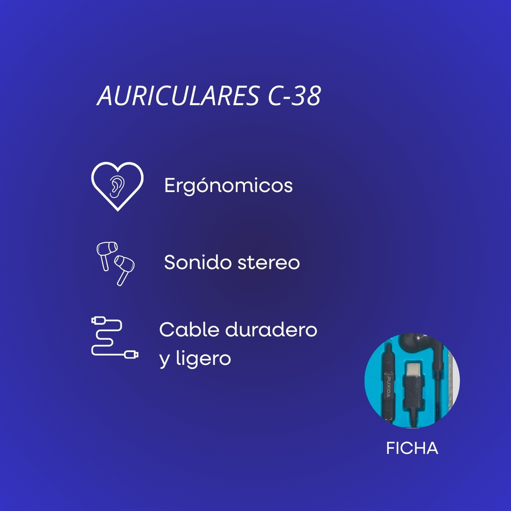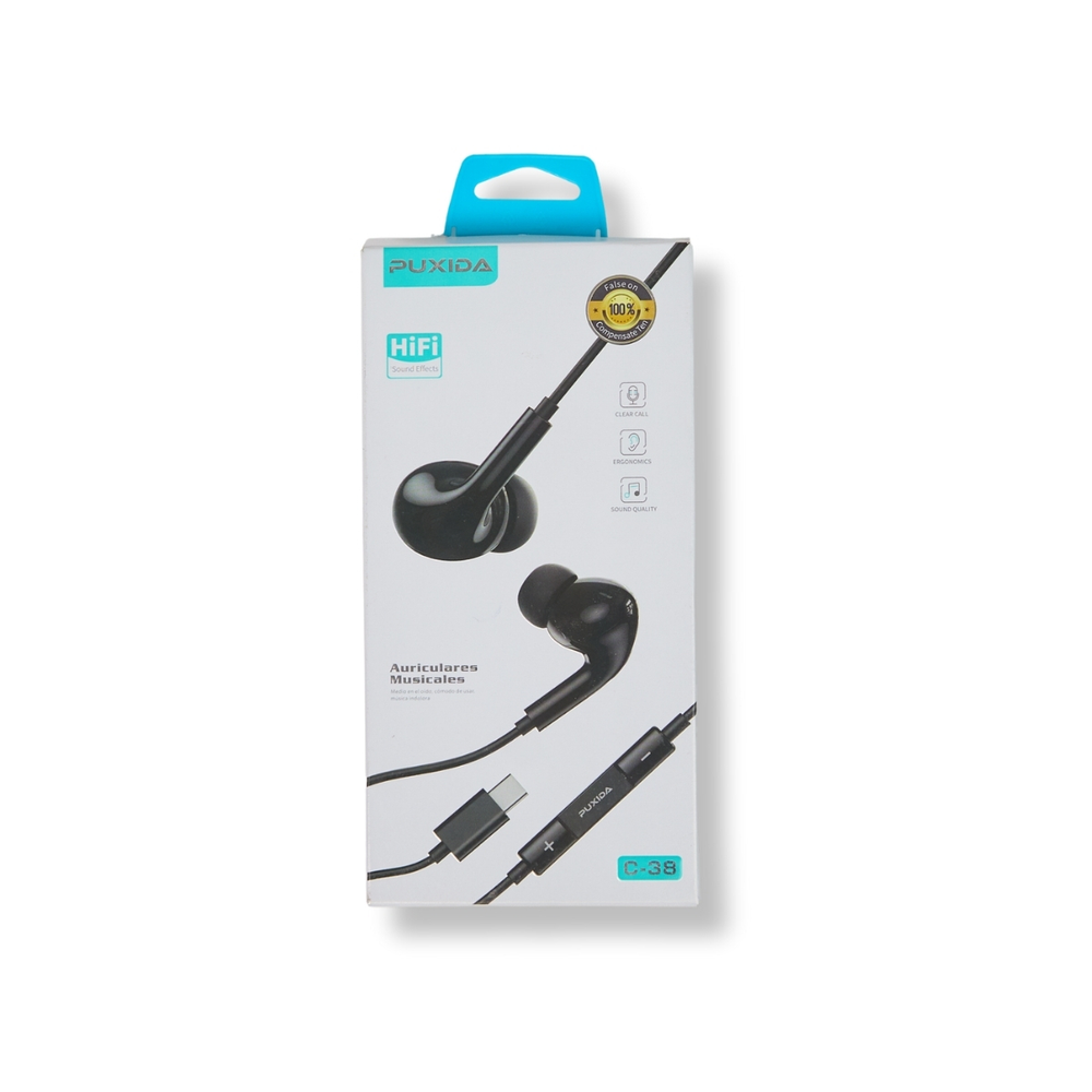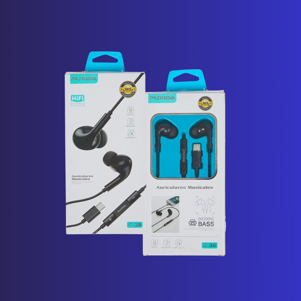 Los auriculares PUXIDA CON CABLE están diseñados para brindar una experiencia de audio de alto rendimiento con total comodidad. Su diseño ergonómico tipo earbuds permite un ajuste cómodo y seguro, ideal para largas horas de uso sin incomodidad. Gracias a la tecnología HiFi, ofrecen un sonido estéreo claro, equilibrado y con graves profundos (Shocking Bass) que potencian cada canción. Con su conector USB-C, aseguran compatibilidad con la mayoría de smartphones y tablets modernos, eliminando problemas de adaptadores. Además, su cable reforzado, liviano y resistente está pensado para acompañarte en el uso cotidiano sin enredos y con máxima durabilidad. Incluyen micrófono integrado y control de llamadas para mayor practicidad.
