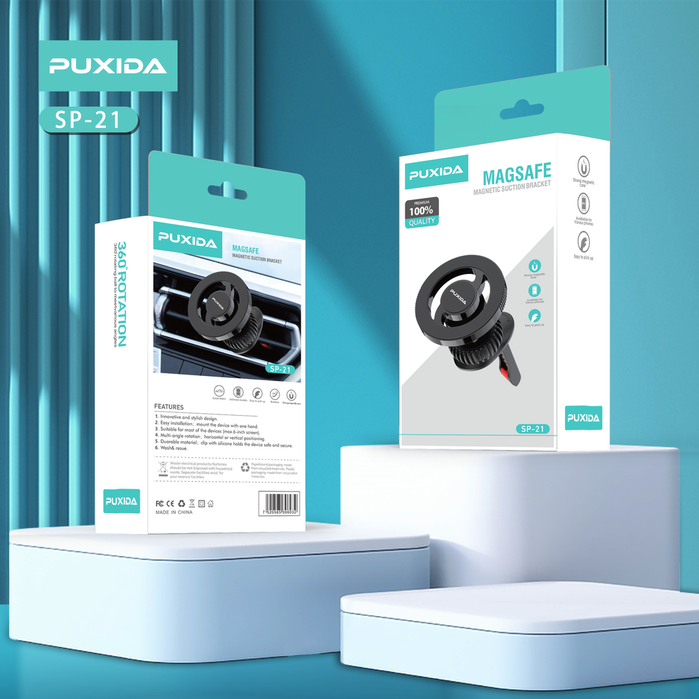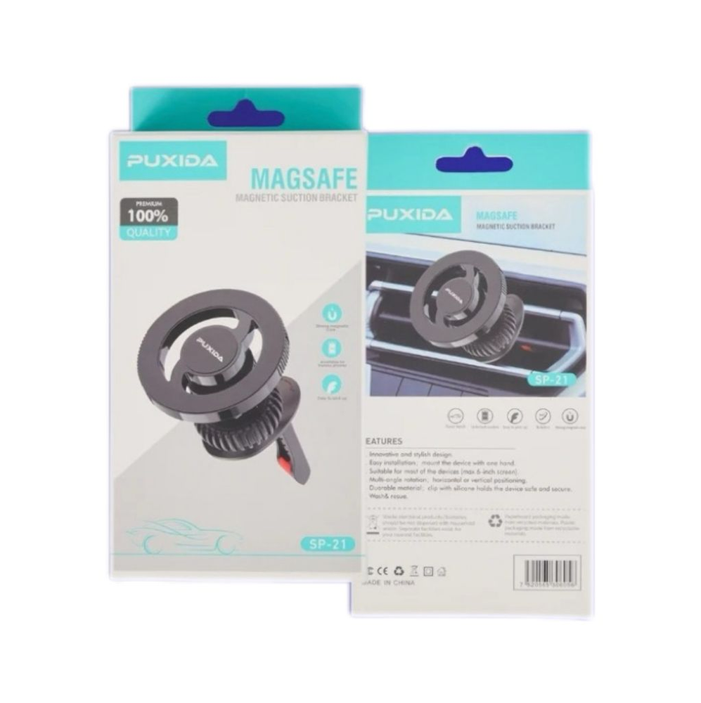 El Soporte Magnético Puxida con tecnología MagSafe es la solución ideal para llevar tu smartphone en el auto de forma práctica, segura y elegante. Su sistema de imán de alta potencia garantiza una sujeción firme incluso en caminos irregulares, mientras que su diseño compacto y minimalista combina perfectamente con cualquier interior de vehículo. Se coloca fácilmente en la rejilla de ventilación y permite un ángulo de visión ajustable para que uses tu celular como GPS, contestes llamadas con manos libres o disfrutes de tus aplicaciones favoritas sin distracciones. Compatible con dispositivos con MagSafe y fundas magnéticas.