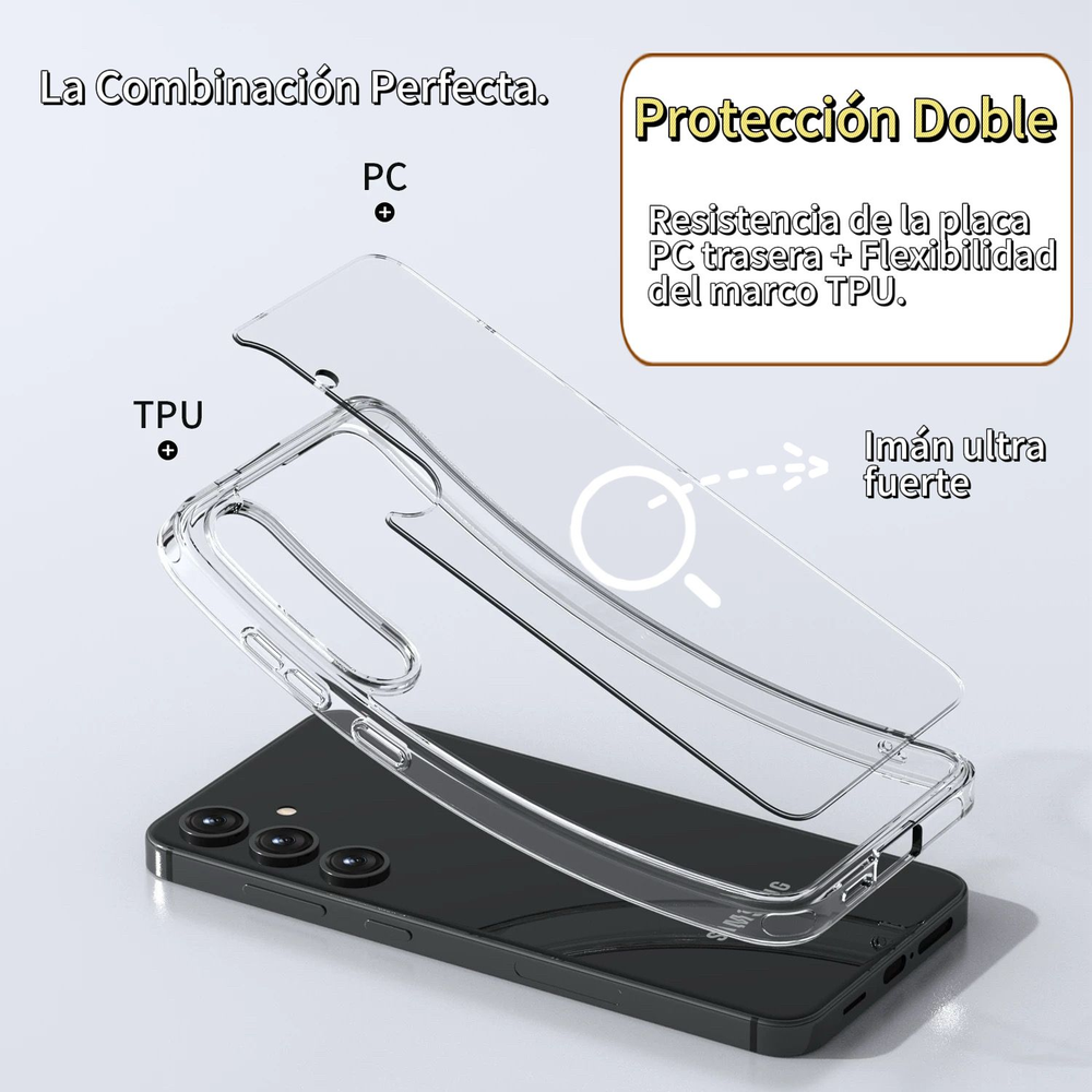 TPU flexible + PC rígido se unen para una defensa total contra golpes y caídas, sin agregar volumen.