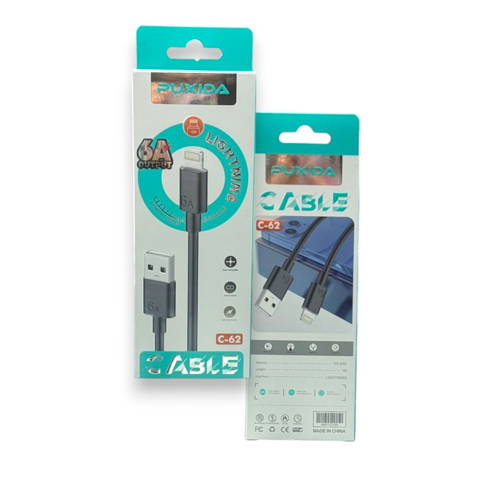 El Cable Puxida USB a Lightning está diseñado para usuarios de iPhone, iPad y otros dispositivos Apple que buscan una solución confiable y resistente para cargar y transferir datos. Con soporte de carga rápida de 6A, asegura que tus dispositivos recuperen batería en el menor tiempo posible, de manera eficiente y segura. Nuestro conector esta hecha PVC, lo protege frente al desgaste diario, evitando quiebres o daños por uso intensivo. El núcleo de cobre puro garantiza una transmisión de energía estable y una sincronización de datos veloz, lo que lo convierte en el aliado perfecto tanto para la oficina como para el uso personal.