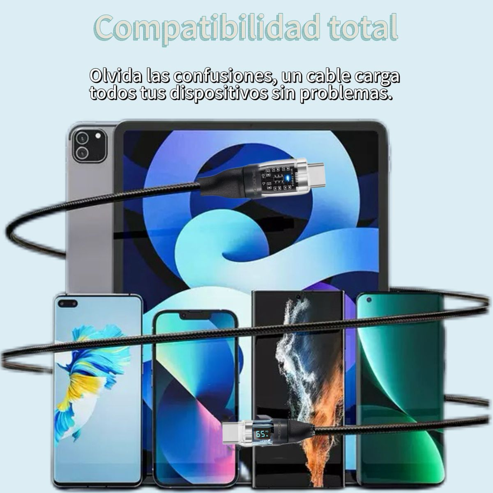 Descubre el primer cable que te permite ver la potencia exacta de carga. Con una pantalla digital integrada, monitoriza el voltaje y amperaje en vivo mientras tus dispositivos se cargan a máxima velocidad. Potencia, transparencia y control total en un diseño revolucionario.